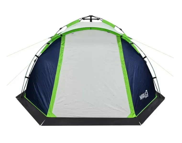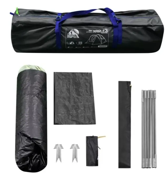 RSP Narle 3 в синем цвете — это трёхместная кемпинговая палатка с автоматическим каркасом, рассчитанная на быстрые выезды и отдых на природе втроём. Её главная фишка — скорость установки: палатку можно развернуть за минуту без лишней возни с дугами, что особенно удобно в сумерках, под дождём или когда не хочется тратить время на сборку.